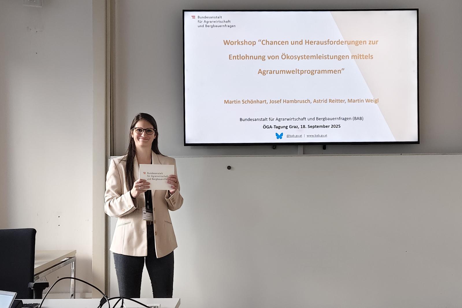 Der Workshop zum Projekt „Klimawandelanpassung im österreichischen Ackerbau (KLÖSTA)“ bot spannende Einblicke in ein laufendes Forschungsprojekt (siehe https://dafne.at/projekte/klosta). Nach einer kurzen Vorstellung des Projekts und vorläufiger Erkenntnisse arbeiteten die Teilnehmenden in Kleingruppen an zwei interaktiven Sessions, die als Input für eine Befragung mittels Q-Methode dienen. Dabei wurden wichtige Themen und Aspekte der Klimawandelanpassung auf Betriebsebene gemeinsam erarbeitet und darauf aufbauend konkrete Aussagen formuliert. Die Sessions boten die Möglichkeit, methodisches Wissen zu vertiefen und verschiedene Perspektiven einzubringen. Ein herzlicher Dank gilt allen Teilnehmenden für ihr Engagement! - Chancen und Herausforderungen zur Entlohnung von Ökosystemleistungen mittels Agrarumweltprogrammen - Martin Schönhart, Josef Hambrusch, Astrid Reitter und Martin Weigl